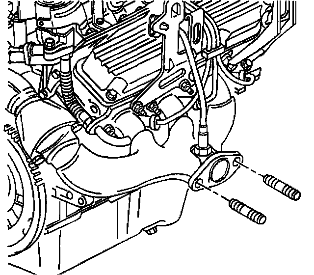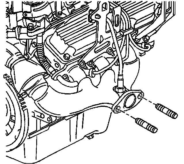 7. Install the right (rear) exhaust manifold stud behind the oxygen sensor.