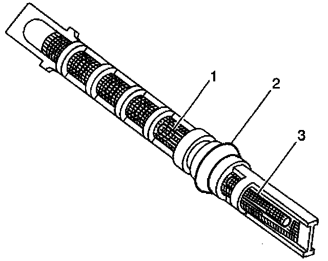 The plastic expansion (orifice) tube, with its mesh screen and orifice, is located between the condenser outlet and evaporator inlet. It provides a restriction to the high-pressure liquid refrigerant in the liquid line, metering the flow of refrigerant to the evaporator as a low-pressure liquid. The expansion (orifice) tube and orifice are protected from contamination by filter screens on both inlet (1) and outlet (3) sides.
