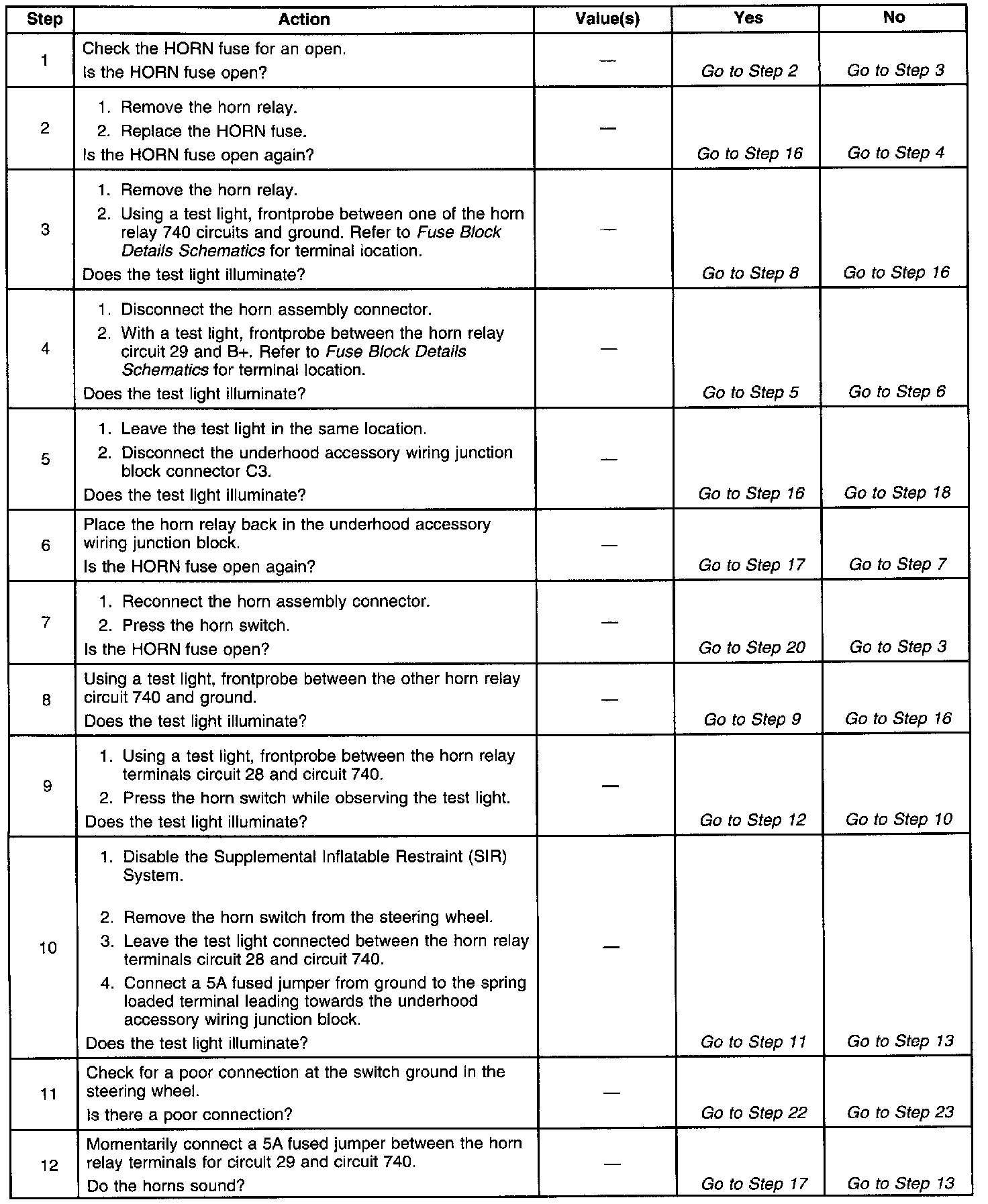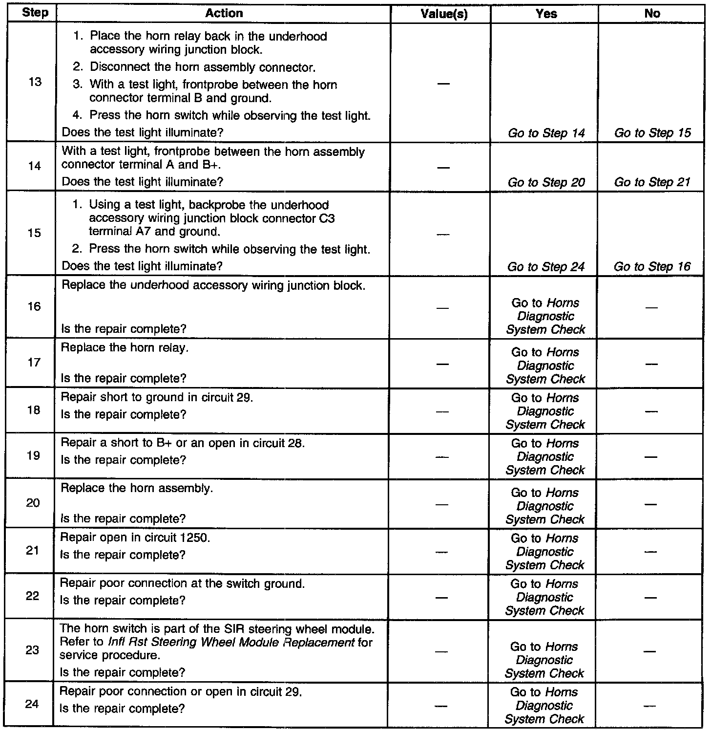 Horns Inoperative