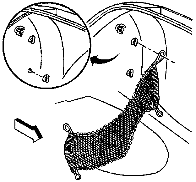 10. Install the rear compartment convenience net, if equipped, to the plastic wingnut retainers.