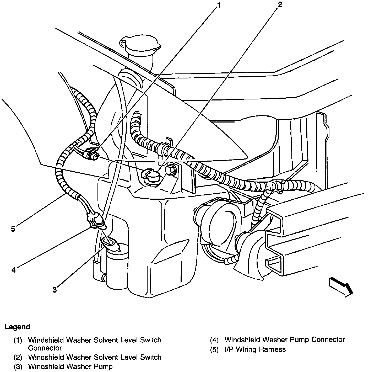 Windshield Washer Components - Inside RF Fender Liner: