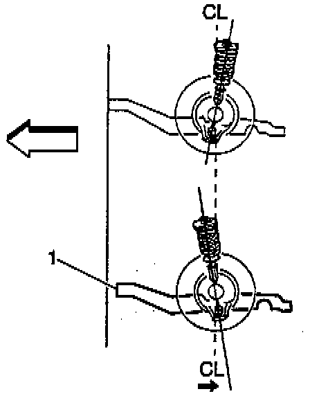 Setback applies to both the front and the rear wheels. Setback is the amount that one wheel spindle may be aligned behind the other wheel spindle. In the illustration, the left side frame (1) is moved toward the rear, causing a misalignment. Setback may be the result of a road hazard or a collision. The first clue is a caster difference from side-to-side of more than one degree.