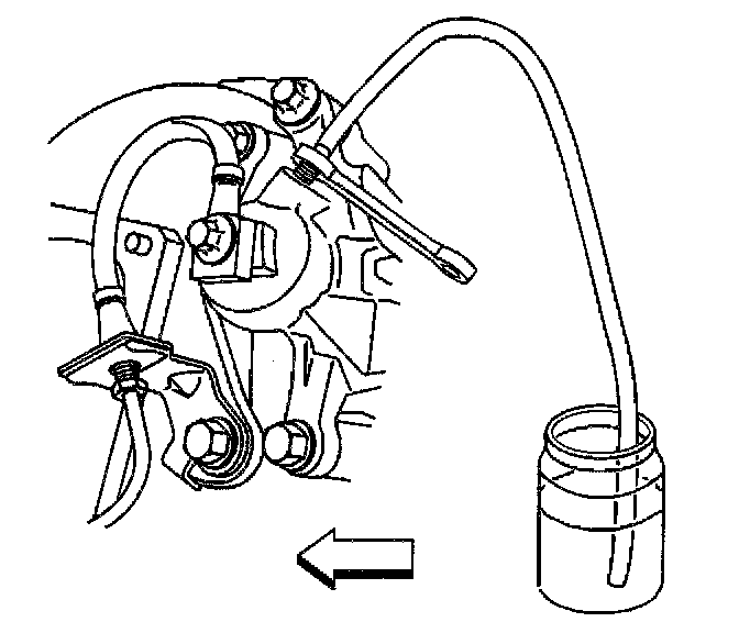 9. Submerge the opposite end of the clear plastic bleeder hose in a clean container partially filled with clean brake fluid.