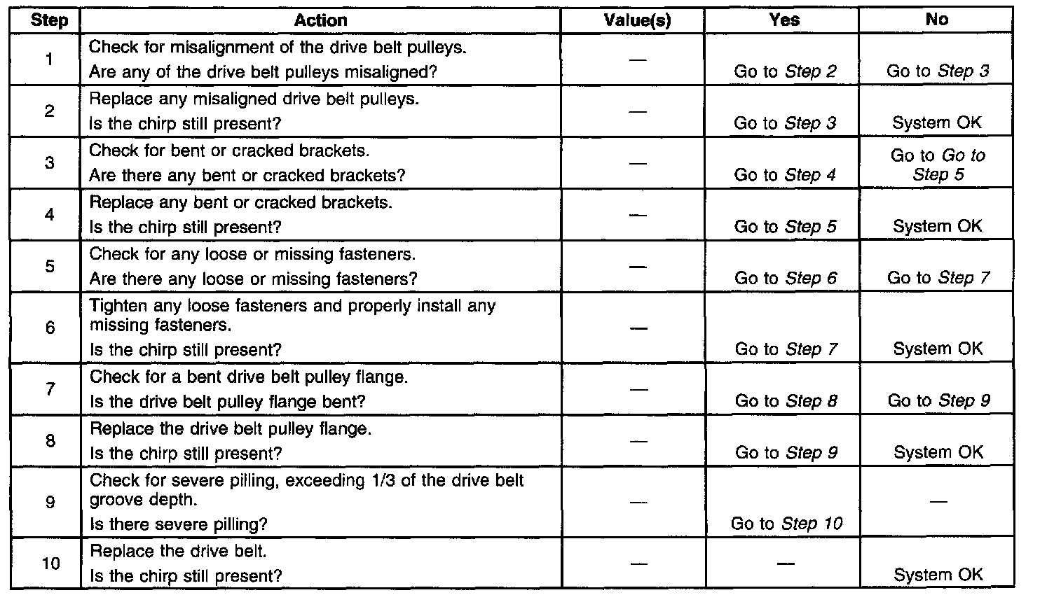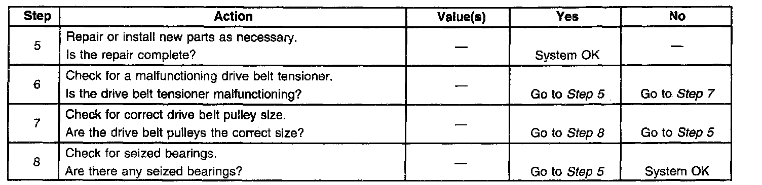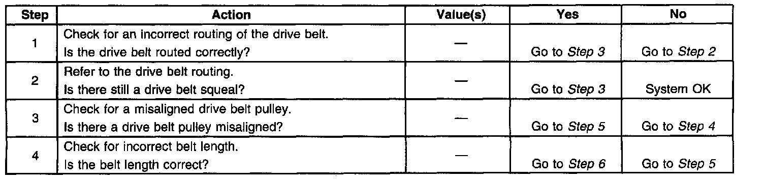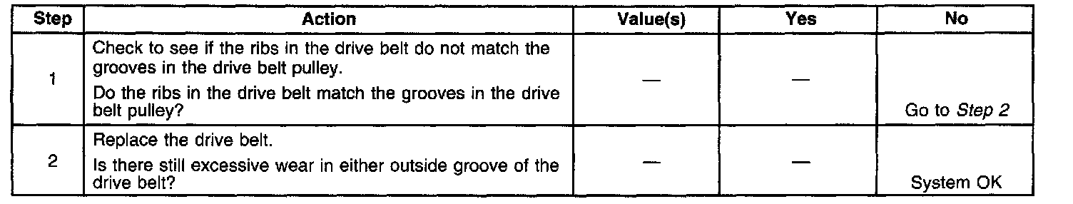 ^ Verify this condition by squirting water onto the drive belt. The noise will momentarily stop.