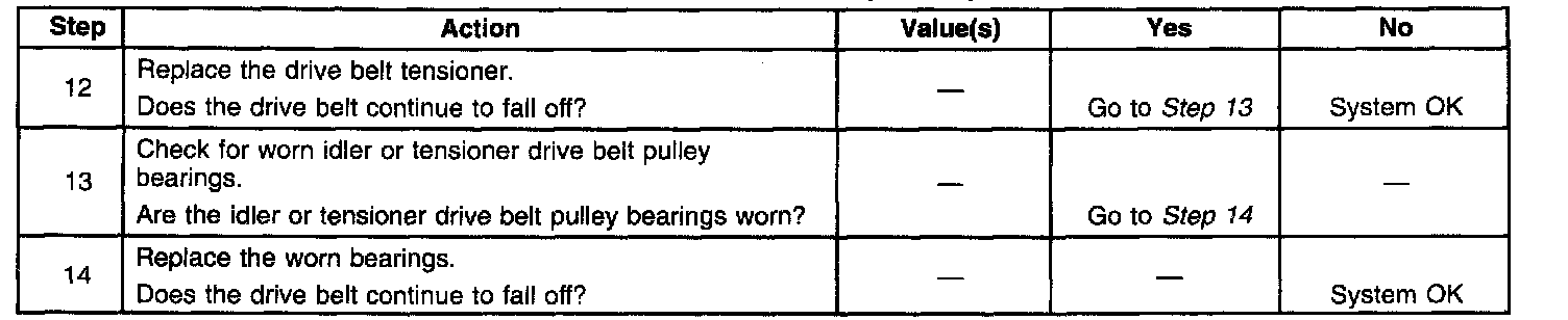 Drive belt noise may be described as a thumping noise heard at, or just above idle speed, as a result of drive belt pilling. In a single-belt drive, drive belt pilling occurs when small particles of drive belt material separate from the drive belt grooves, and form small : balls or pills in the drive belt grooves. While some drive belt pilling is normal, excessive pilling can cause a thump or knocking as the pills pass over various drive belt pulleys. This causes the drive belt to repeatedly jump off of and slap onto the drive belt pulley.
