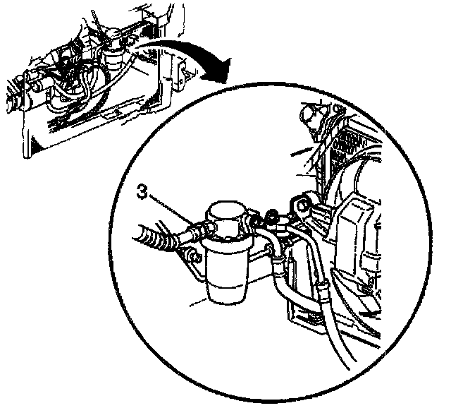 5. Remove the suction line nut (3) at the accumulator.