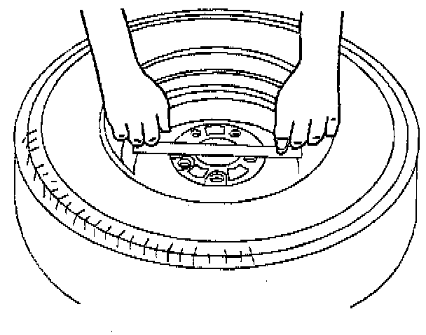 1. Use a straight edge 203-229 mm (8-9 in) long. Place the straight edge on the wheel inboard mounting surface. Try to rock the straight edge up and down within the mounting surface.