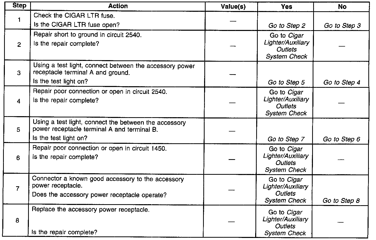 Auxiliary Outlets Inoperative - Accessory Power Receptacle: