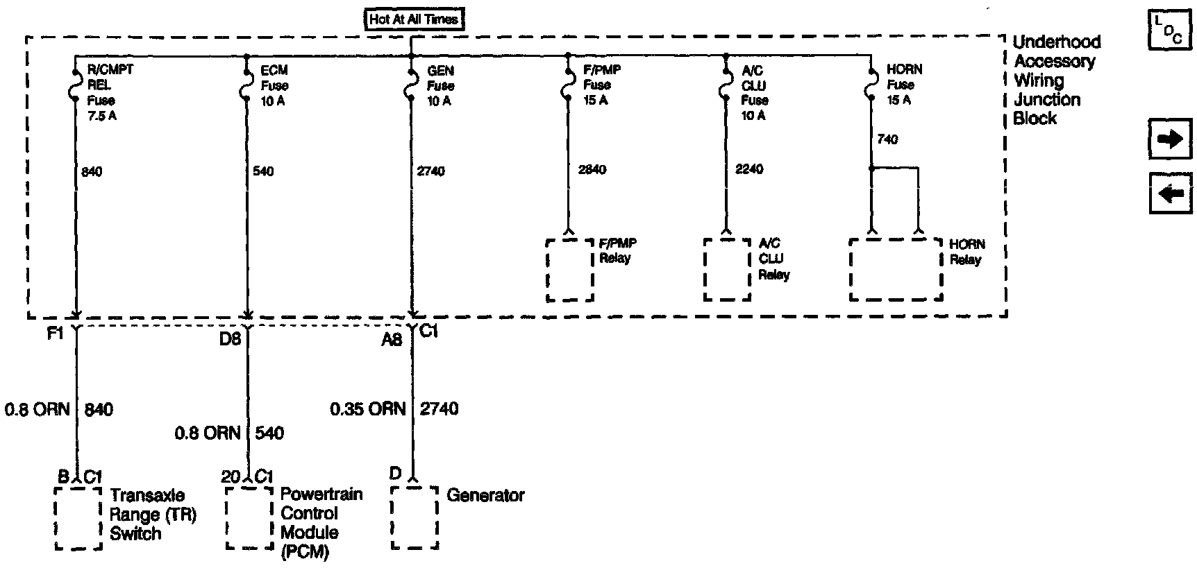 R/CMPT REL, ECM, GEN, F/PMP, A/C CLU & Horn Fuses