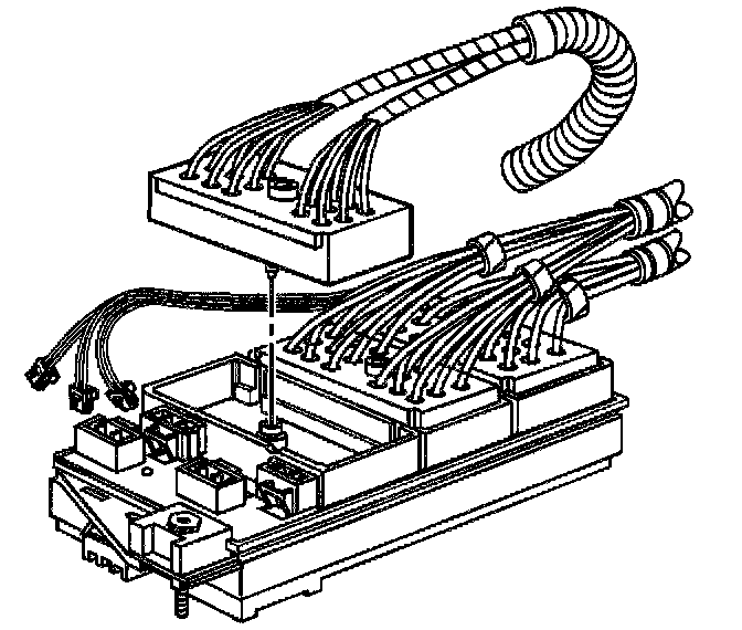 9. Remove the electrical connector bolt and the forward lamp harness from the underhood accessory wiring junction block.