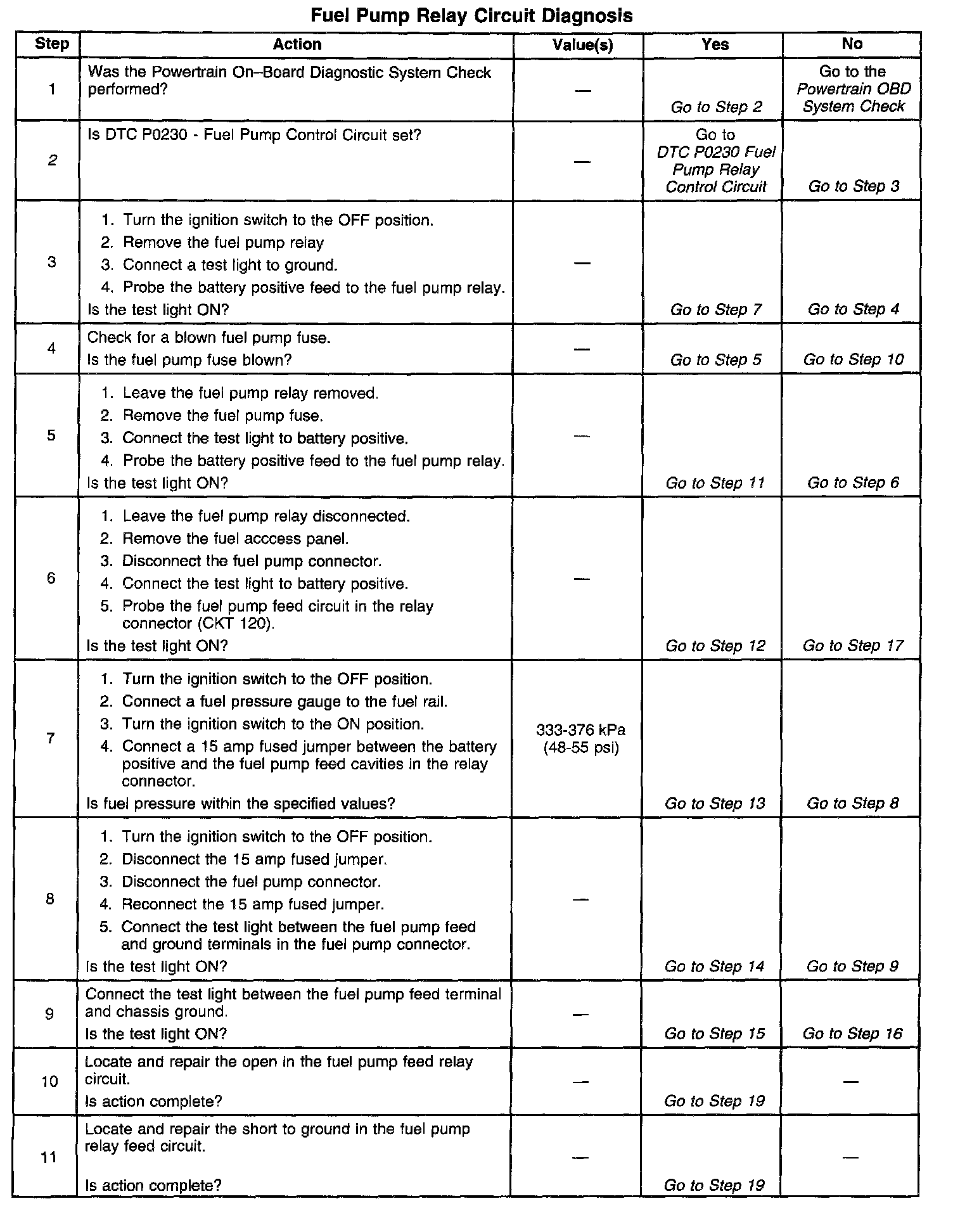Number(s) below refer to the step number(s) on the diagnostic table: