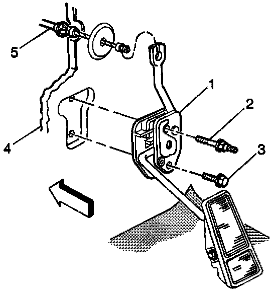 3. Remove the accelerator cable (5) from the accelerator pedal (1).