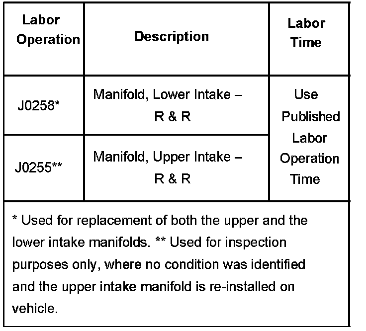 If degradation of upper intake manifold composite material is found, replace the lower and upper intake manifolds with the following part numbers: