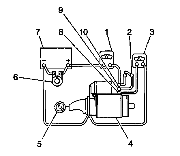 4. Connect the starter motor and an ammeter in series, from the positive terminal of a fully charged 12 volt battery.