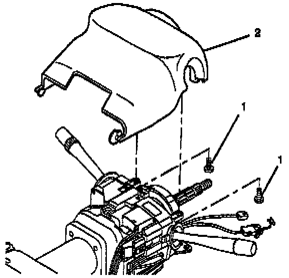 5. Remove the two torx head screws (1) from the upper shroud (2).