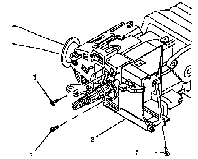 3. Remove 3 pan head tapping screws (1) from the switch mounting bracket (2). Remove the switch mounting bracket (2).