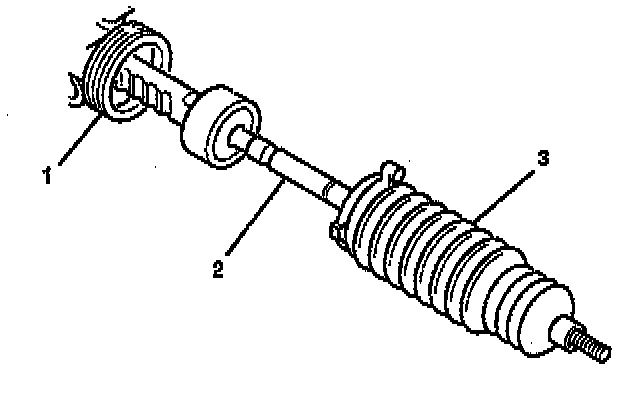 4. Remove the shock dampener (2) from the inner tie rod assembly (5).