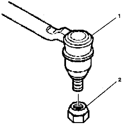 1. Pull the prevailing torque nut (2) from outer tie rod assembly (1).