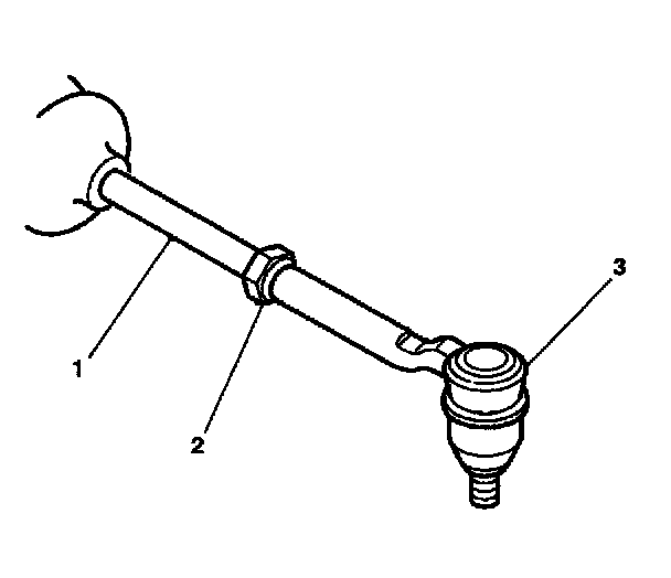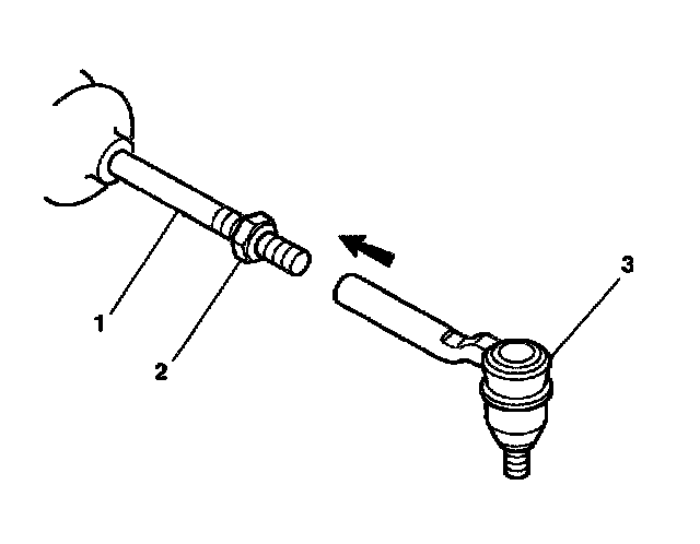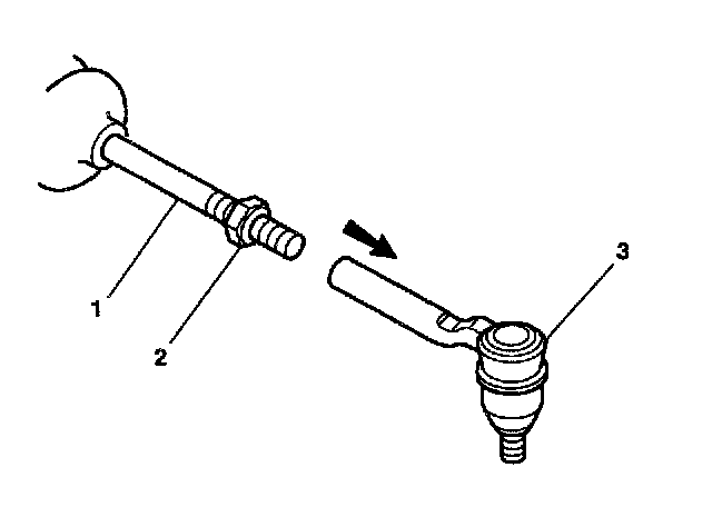 1. Connect the outer tie rod assembly (3) to the inner tie rod (1).