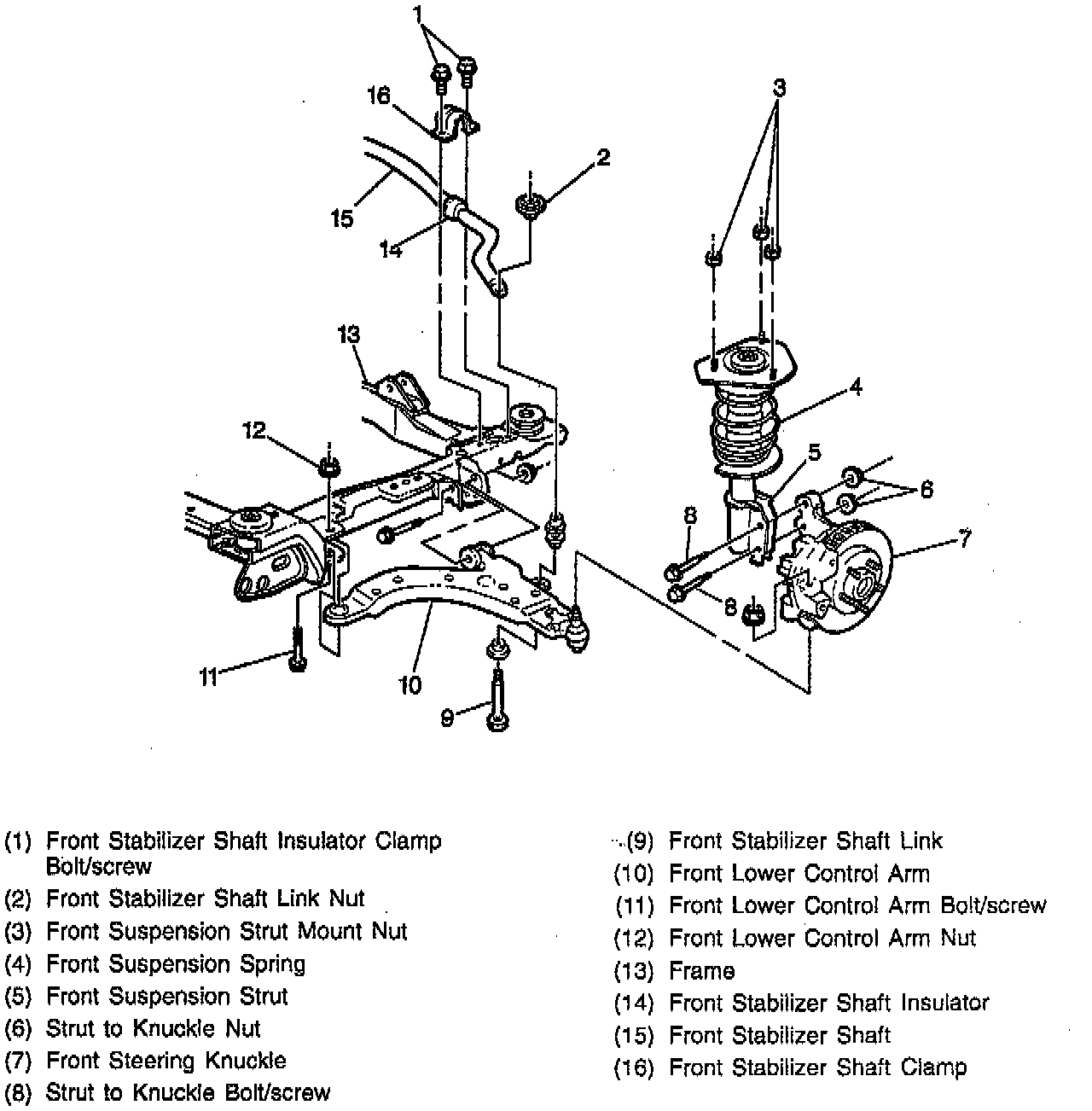 If any of the following items require replacement during service, you must check/adjust the camber and the toe: