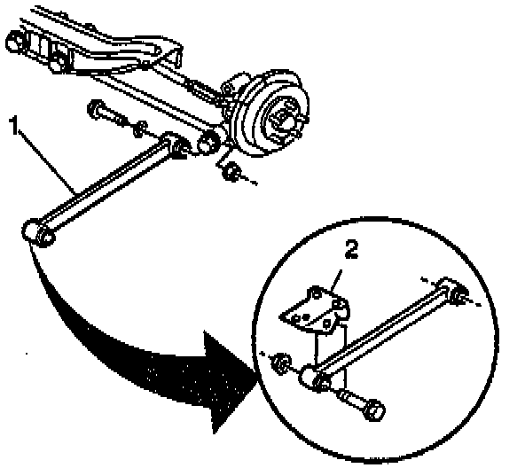 5. Disconnect the trailing arm from the trailing arm bracket (2).