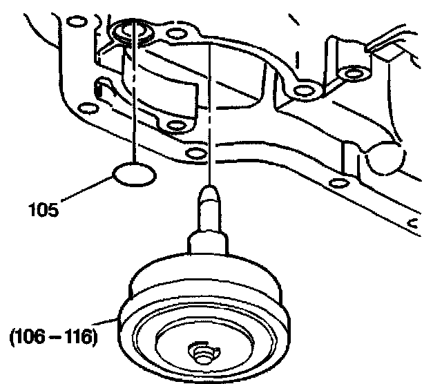 8. Remove the manual 2-1 band servo cover gasket (105) from the case.