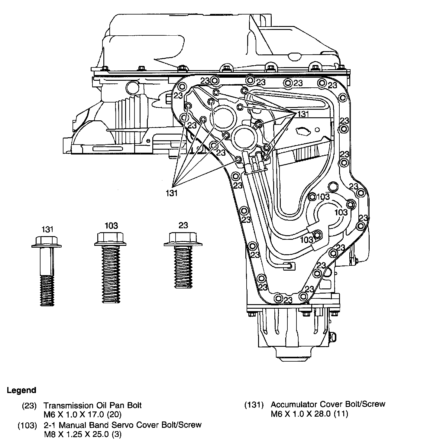 Bottom Pan, Accum Cover,Manual 2-1 Band Servo Bolt Locations