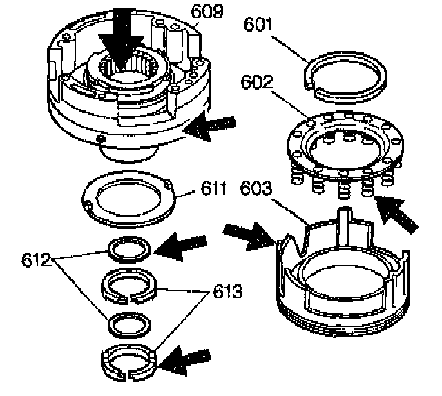 4. Inspect the fourth clutch spring assembly (602) for distorted or missing springs.