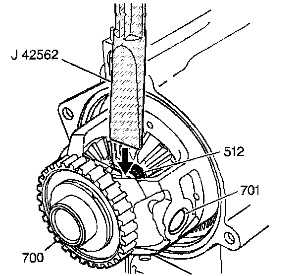 3. Place the J 42562 between the end of the output shaft and the differential pinion shaft.