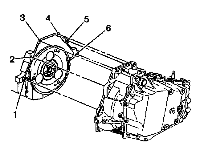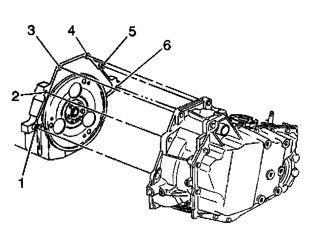 9. Remove the upper transaxle bolts (3, 4 and 5) and stud (2).