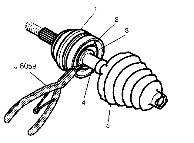 1. Remove the large boot retaining clamp from the CV joint with a side cutter. Discard the boot retaining clamp.