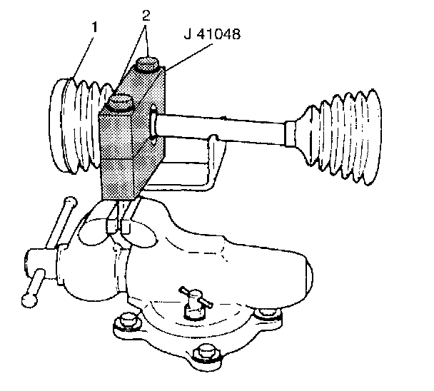 3.1. Position the outboard end of the halfshaft assembly (1) in J 41048.