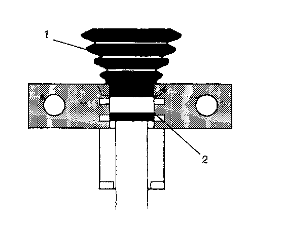 1. Install the new swage ring (2) on the neck of the halfshaft outboard boot (1). Do not swage.