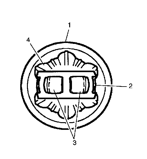 8. Hold the cage and the inner race 90 degrees to centerline of the outer race (1) and align the cage windows (3) with the lands of the outer race.