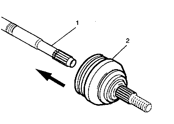 13. Push the CV joint (2) onto the halfshaft bar (1) until the retaining ring is seated in the groove on the halfshaft bar.