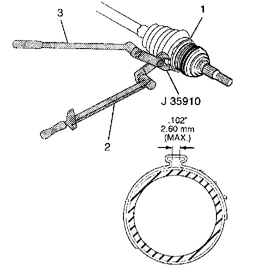 15. Crimp the boot retaining clamp (3) using J 35910.