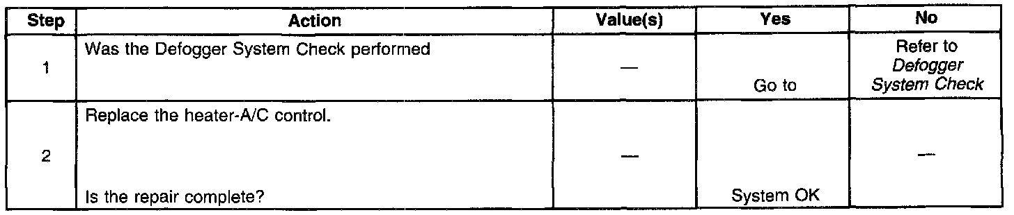 Defogger Inop - Rear Window, Indicator Lamp on