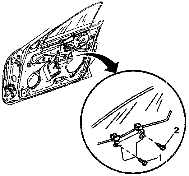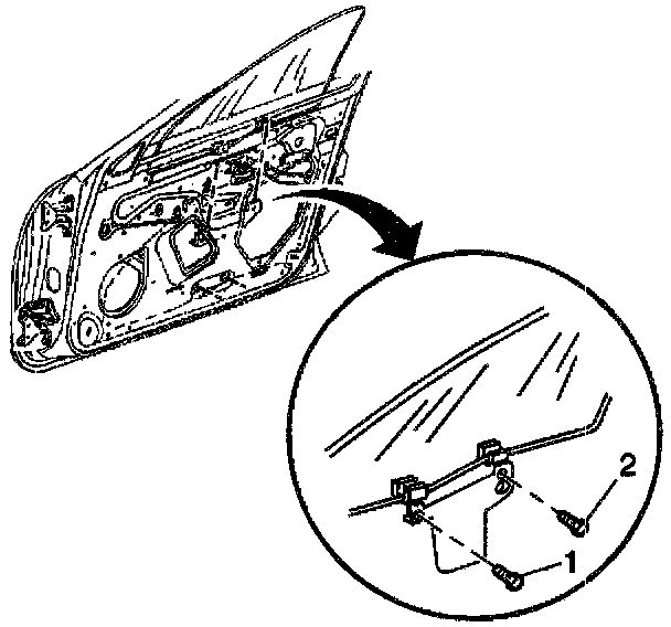 7. Condition 2.4: Loosen the window to regulator bolts (1) (2).