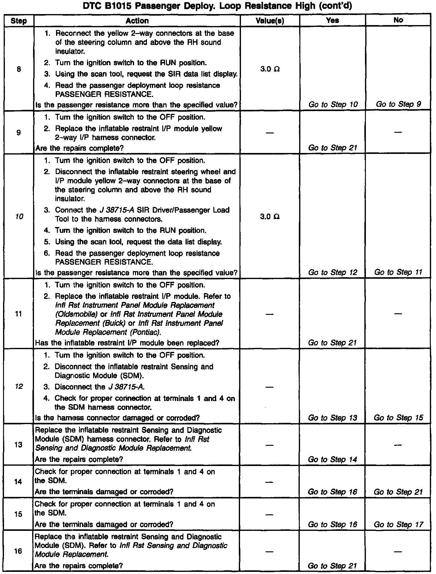 ^ The passenger deployment loop resistance is more than 3.0 ohms. The passenger deployment loop consists of the following components: