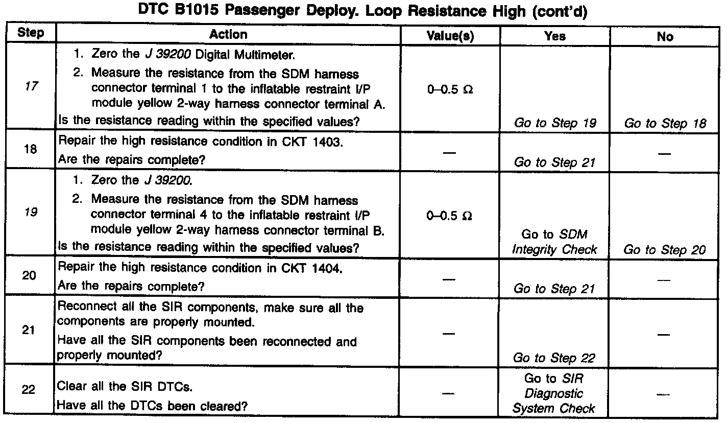 ^ The wire to terminal connections in CKT 1404. The diagnostic table directs the technician to note the entry value of PASSENGER RESISTANCE. Comparing the value of PASSENGER RESISTANCE over multiple ignition cycles can be helpful in determining if an intermittent condition exists.