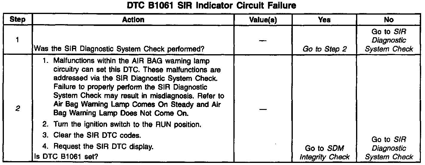 2. When the inflatable restraint Sensing and Diagnostic Module (SDM) is configured for a serial data controlled warning indicator (smart cluster), DTC B1061 will set.