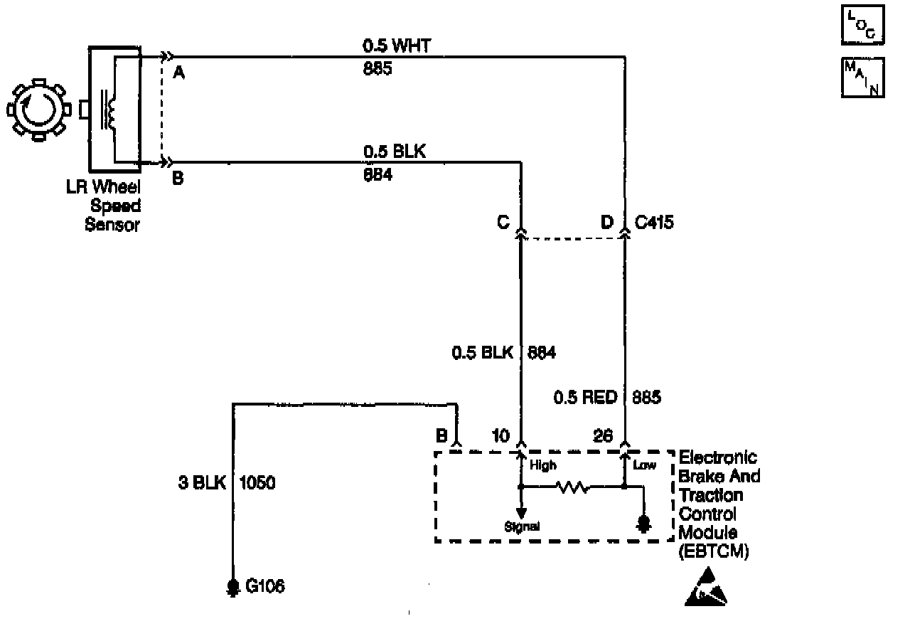 The Wheel Speed Sensor (WSS) is a single point magnetic pickup that produces an AC signal. The Electronic Brake Control Module/Electronic Brake Traction Control Module (EBCM/EBTCM) uses the signal frequency in order to calculate the wheel speed.