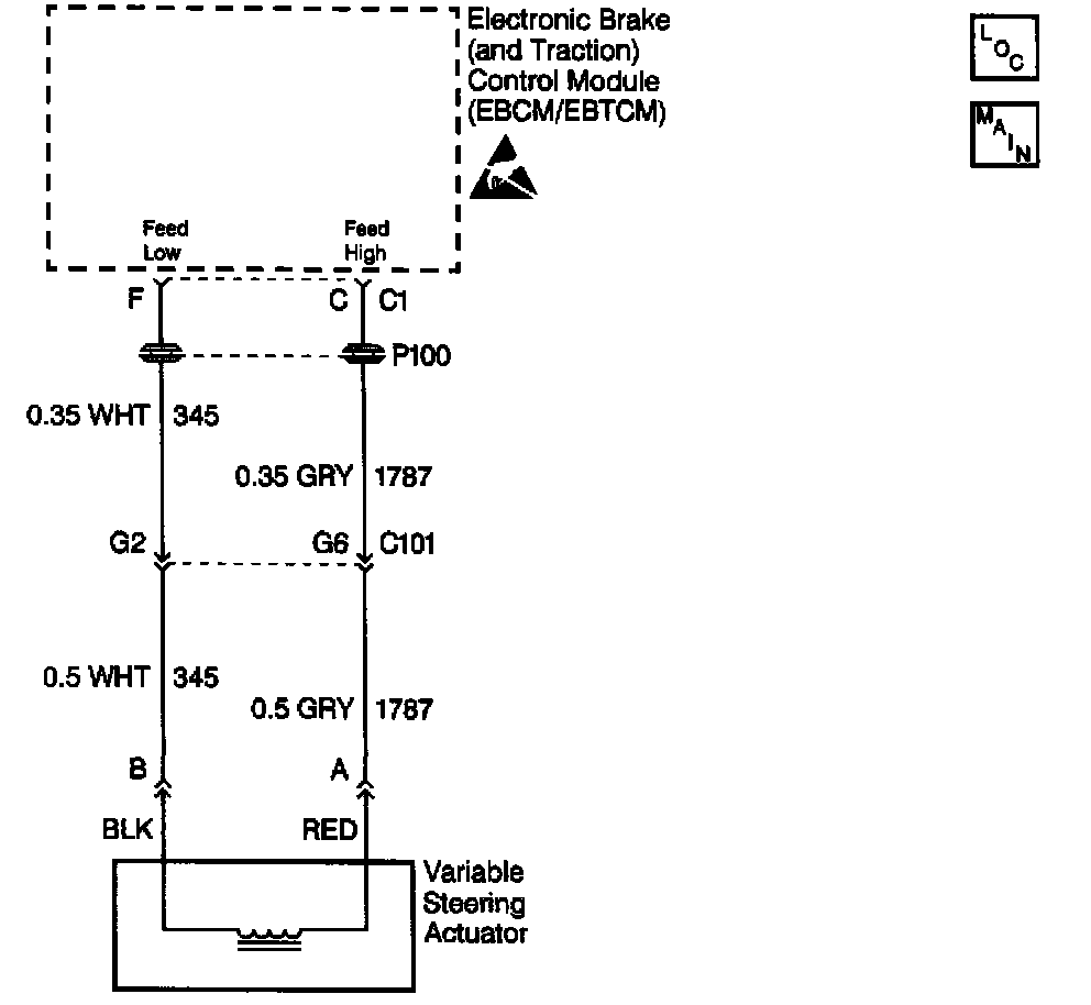 The EBCM/EBTCM controls a bi-directional magnetic rotary solenoid. The solenoid is in the steering gear. The solenoid adjusts the amount of power steering assist in order to achieve a given level of driver effort in turning the vehicle. The EBCM/EBTCM varies the steering assist by adjusting the current flow through the solenoid. The amount of steering assist adjusted for steering is dependent upon vehicle speed. As the vehicle speed increases, the following actions occur: