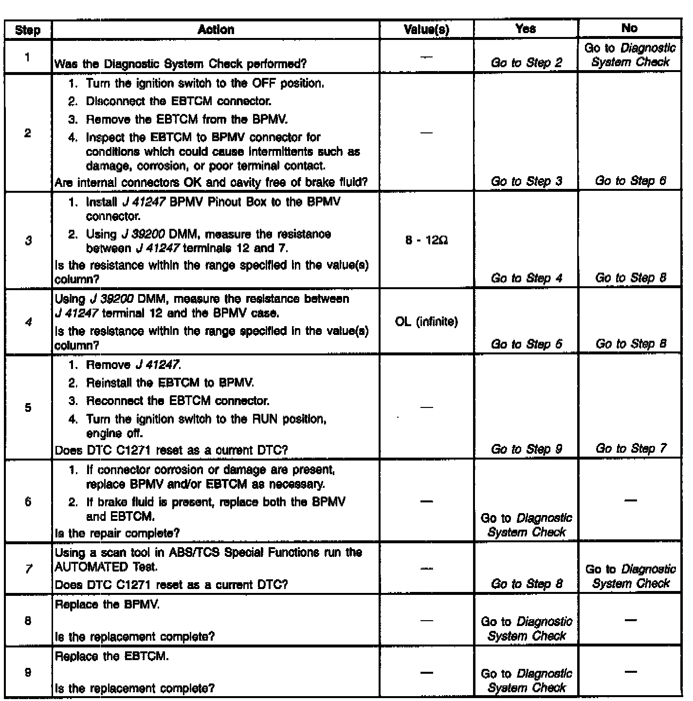 The numbers below refer to step numbers on the diagnostic table.