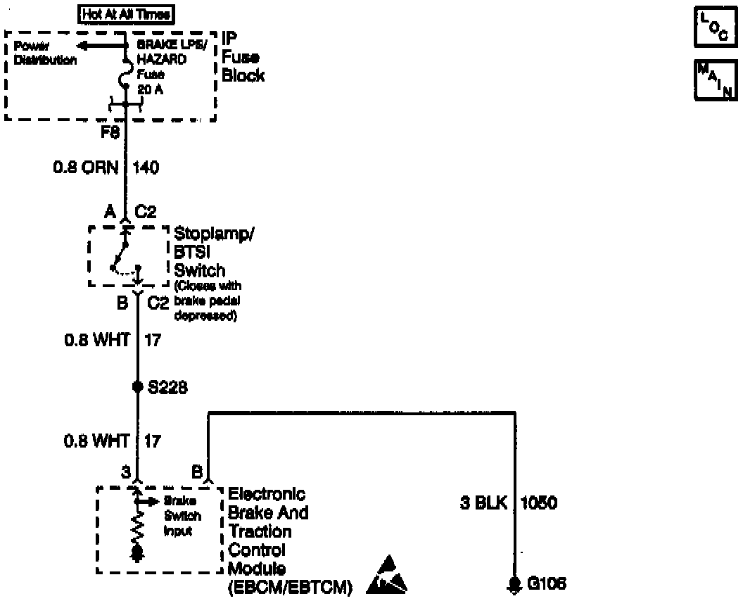 ^ Verify proper Stoplamp/BTSI switch operation during the Data List of the Scan Tool. As the brake is applied, the data list should display the Stoplamp/BTSI switch on within one inch of travel.