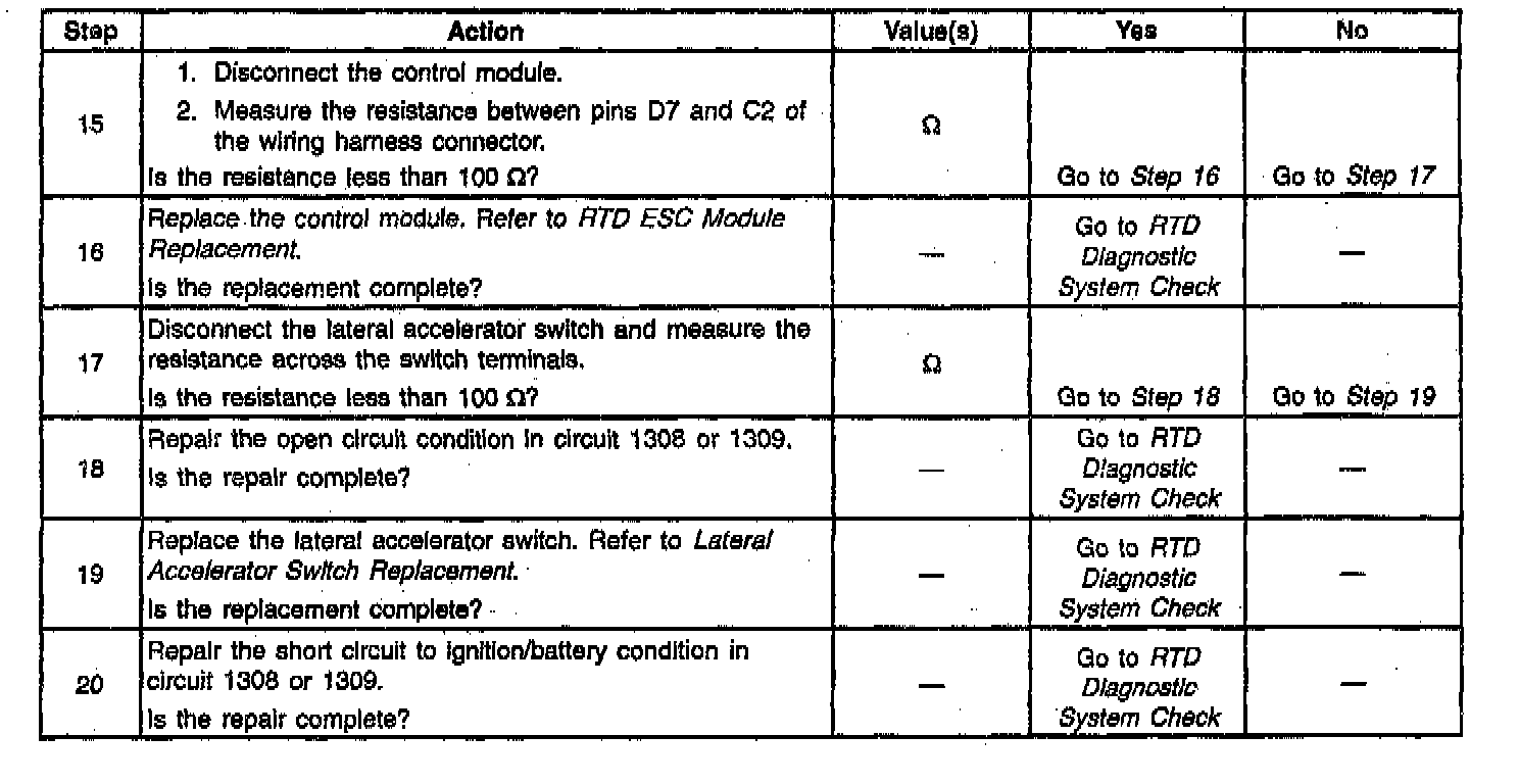 The Control Module will monitor the lateral accelerator switch signal for invalid voltage levels. A lateral accelerator switch error occurs when the lateral accelerator switch signal is short circuited to B+ or ground, or the lateral accelerator switch is open-circuited or disconnected. Recovery occurs upon detection of valid lateral accelerator switch input voltage.