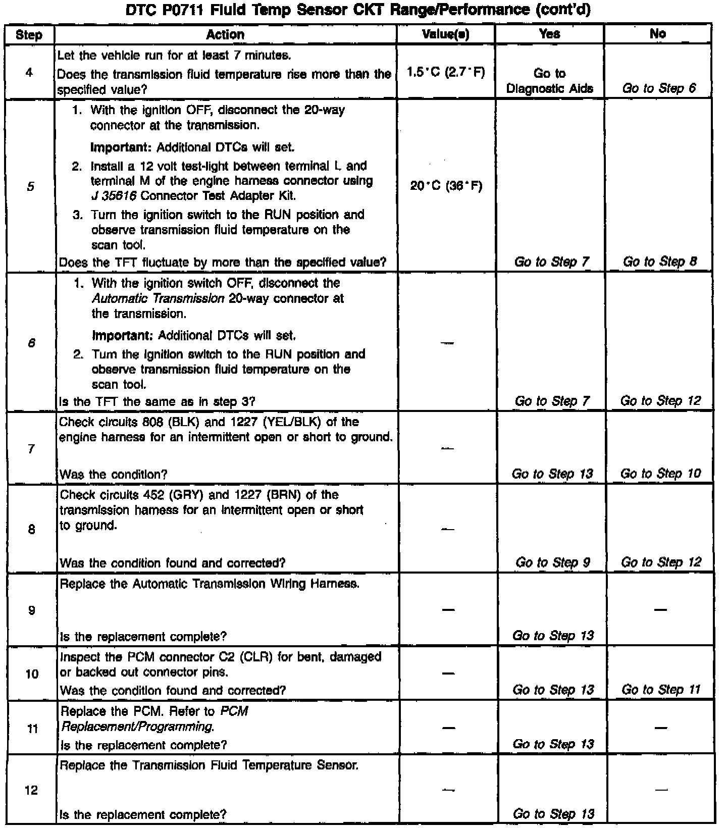 6. This step determines if a condition exists with the PCM or TFT Sensor.