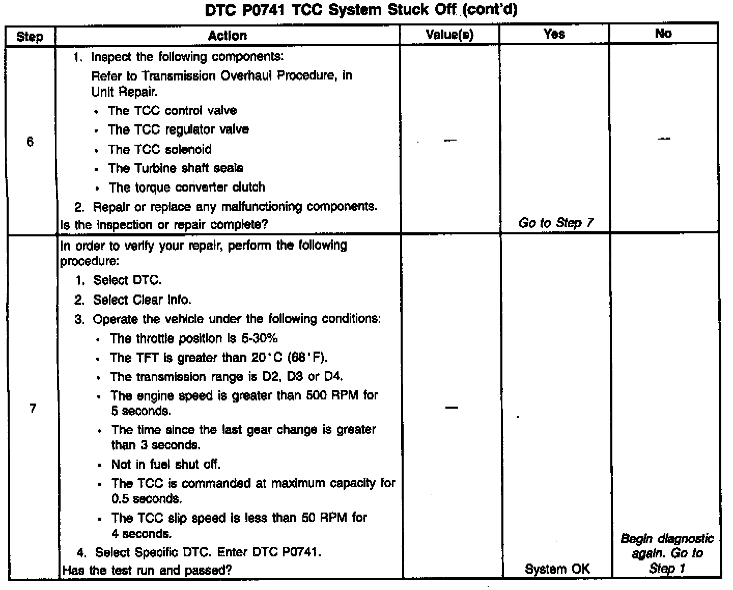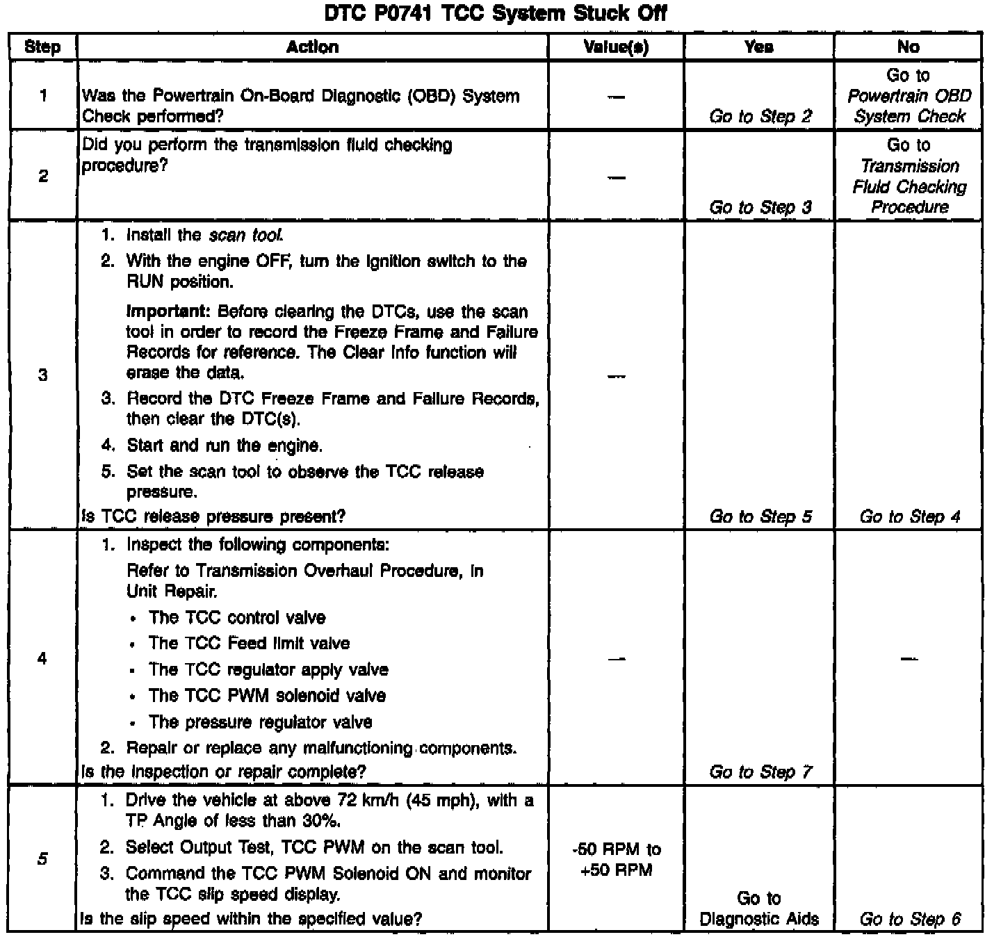 5. This step verifies that the TCC engages when commanded ON by the scan tool.