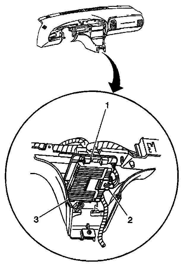 3. Push upward on the amp (3) in order to disengage the amp from the bracket (1).