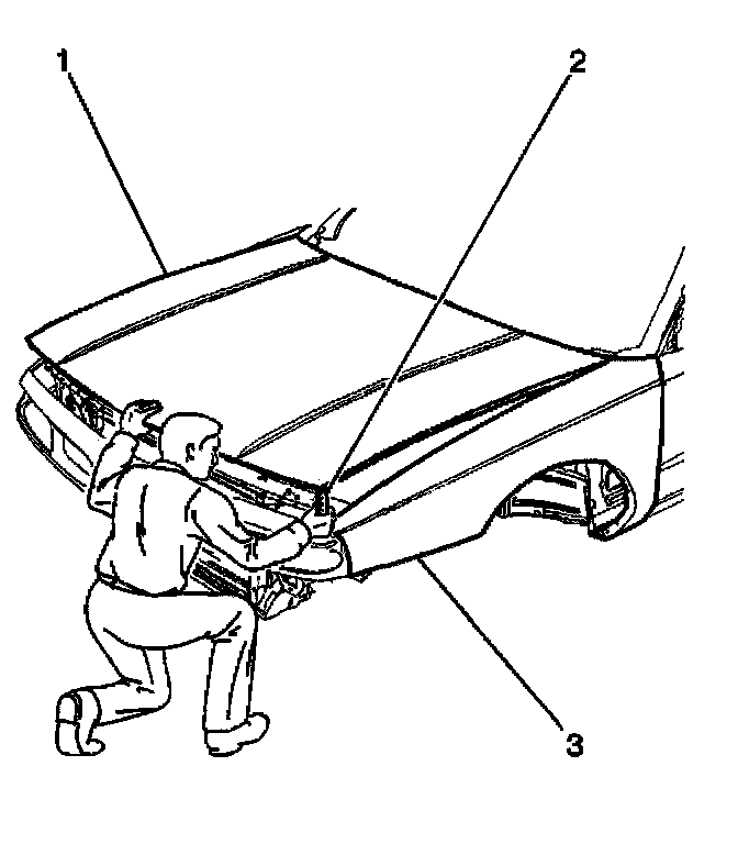 9.3 Ensure that the front upper edge of the hood is 80 mm (3 1/8 in) above the top surface of the fender (3). This determines if the latch is set to high.